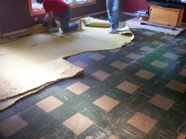 I don't know if it's just me but I actually think this tile is kinda cool. But I will admit that I was pretty bummed that we didn't have hardwood flooring hiding under the carpet. That was the common flooring for homes of that era. But not ours. Darn it anyways.
