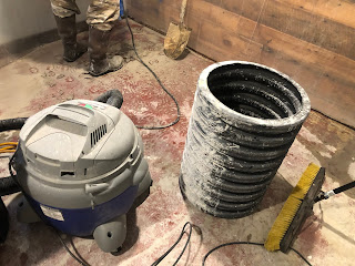 We actually did the sump hole under the stairs first but it was so dirty and dusty in there that I couldn't see a thing and could hardly breathe so I did not get any photos of the process.